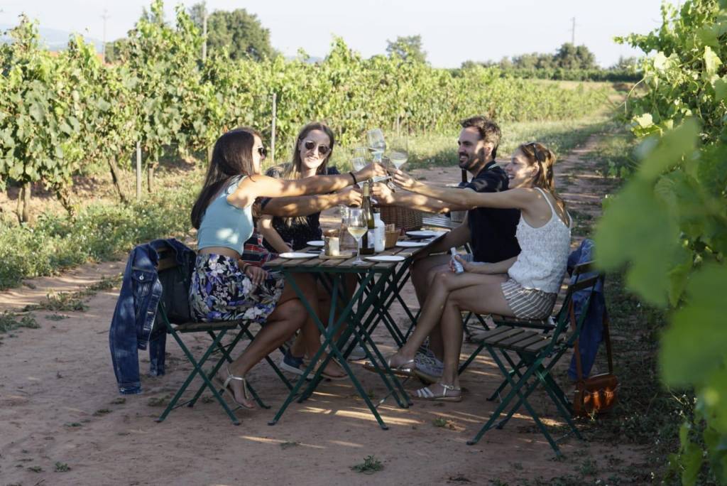 Comença amb un tast ràpid de tres vins a la botiga. Després, tria el teu preferit i endú-te’l a la vinya amb un cistell de pa amb tomàquet, embotit, oli d’oliva i formatge per gaudir d’un pícnic entre vinyes.